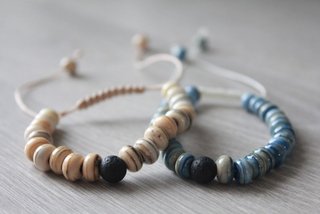 Aujourd’hui je vous présente des nouveaux bracelets de perles de verre et de pierre de lave.